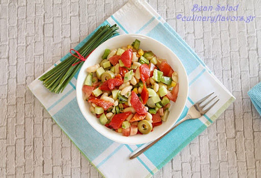 Because of the high temperatures during summer, I always try to make light meals that not only will give us the necessary power to work throughout the day, but also to keep us cool and not overwhelmed. Salads are the perfect meals and I always try to enrich them, so as to constitute a full meal without having to be followed by any main course. Greek salad of course is at peak demand and we all enjoy the fresh seasonal vegetables which form it. To change a little bit and get out of the ordinary I made a salad based on the Greek one, but I added beans to it. I also made a sweet and sour Vinaigrette with cumin to add more flavor to it. The result was a very filling, refreshing and colorful salad packed with vitamins, good fats and taste. Let’s go and make it!