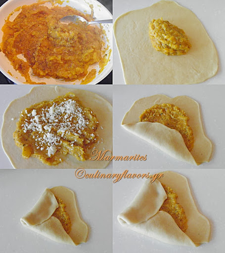 Today in Greece we celebrate Epiphany Day. It is the day when Christ went to Jordan River and was baptized by John the Baptist. Housewives in Skyros make these little pies today to celebrate. They are made with butternut squash, a salty cheese and herbs and spices. They are very easy to make and instead of your own phylo dough, you can make them with store bought or with puff pastry. They are very easy to make and those of you who have a pizza stone you can bake them there, they become very tasty.