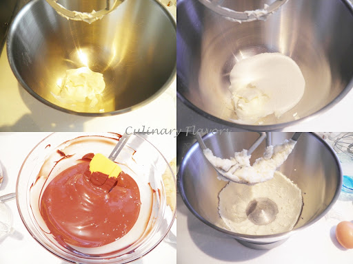 - Στη συνέχεια ρίξτε το αλεύρι και τέλος ρίξτε τη λιωμένη σοκολάτα.