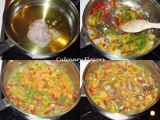 Let simmer for 15 minutes and the sauce is ready. Add the dissolved corn flour so as to thicken the sauce. You can either throw the pasta in the skillet and mix or pour the veggies over pasta. I accompany the dish with what else…sangria. Very yummy! I am sending this to Presto Pasta Nights an idea of Ruth Daniels from Once Upon a Feast, hosted this week by her.